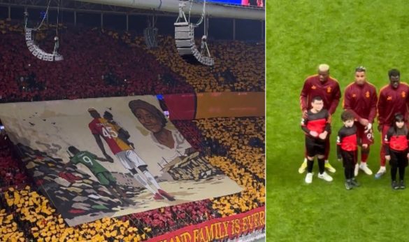 Имено, додека се интонираше химната на Лигата на шампионите ултрасите на турскиот клуб истакнаа транспарент на која беше тој и неговото семејство. На кореографијата беше прикажана сцена инспирирана од животната приказна на нигерискиот напаѓач. Осимен е претставен како го држи за рака својот помлад брат, додека во рацете ја носи својата сестра.
