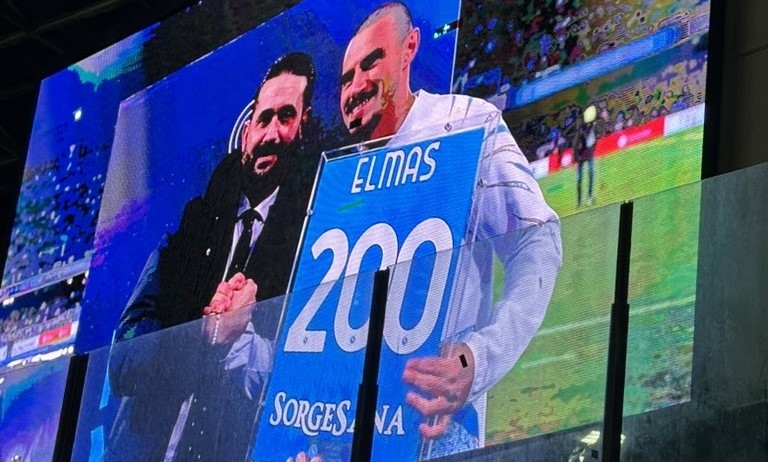 На Елмас му беше врачен дрес во рамка со бројот 200 и неговото презиме. Тоа е поради јубилејната бројка на 200 настапи во дресот на Наполи за него.