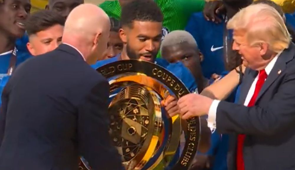 Фудбалерите на Челси се чудеа зошто американскиот претседател Доналд Трамп остана со нив кога требаше да го креваат пехарот. Капитенот Рис Џејмс дури и му се обрати, а тој реши да остане и да слави со нив.