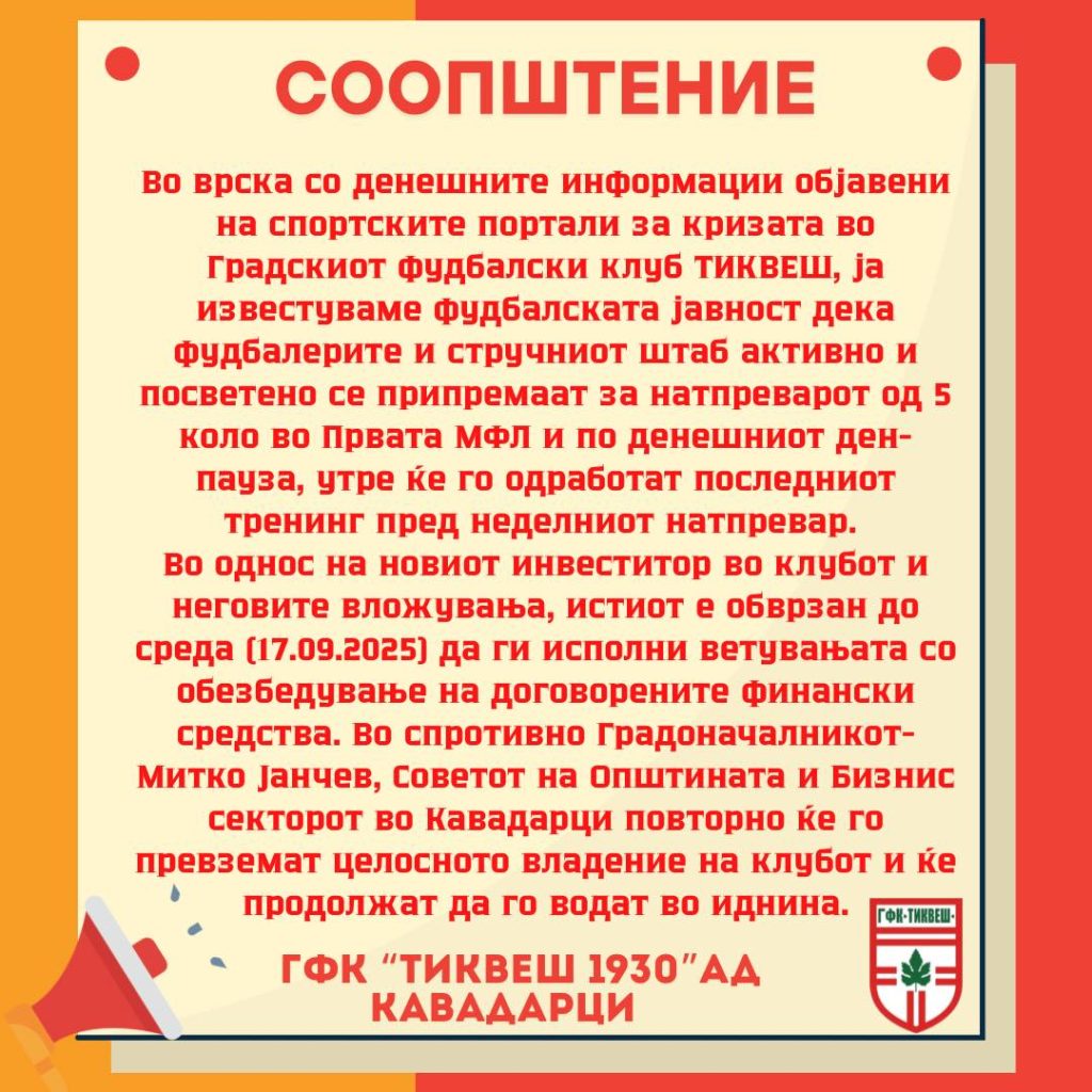 Со доаѓањето на новиот сопственик на Тиквеш се чинеше дека клубот ќе напредува, но наместо тоа има неисплатени плати и наталожени долгови.