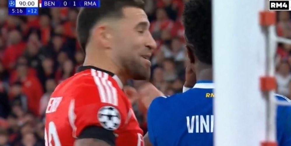 Vini making racist comment too, but Otamendi reacted by showing him his WC ….why is Vini covering his mouth..is this too a proof of him making a racist comment…but this time the victim reacted differently pic.twitter.com/gFc3mN1811
