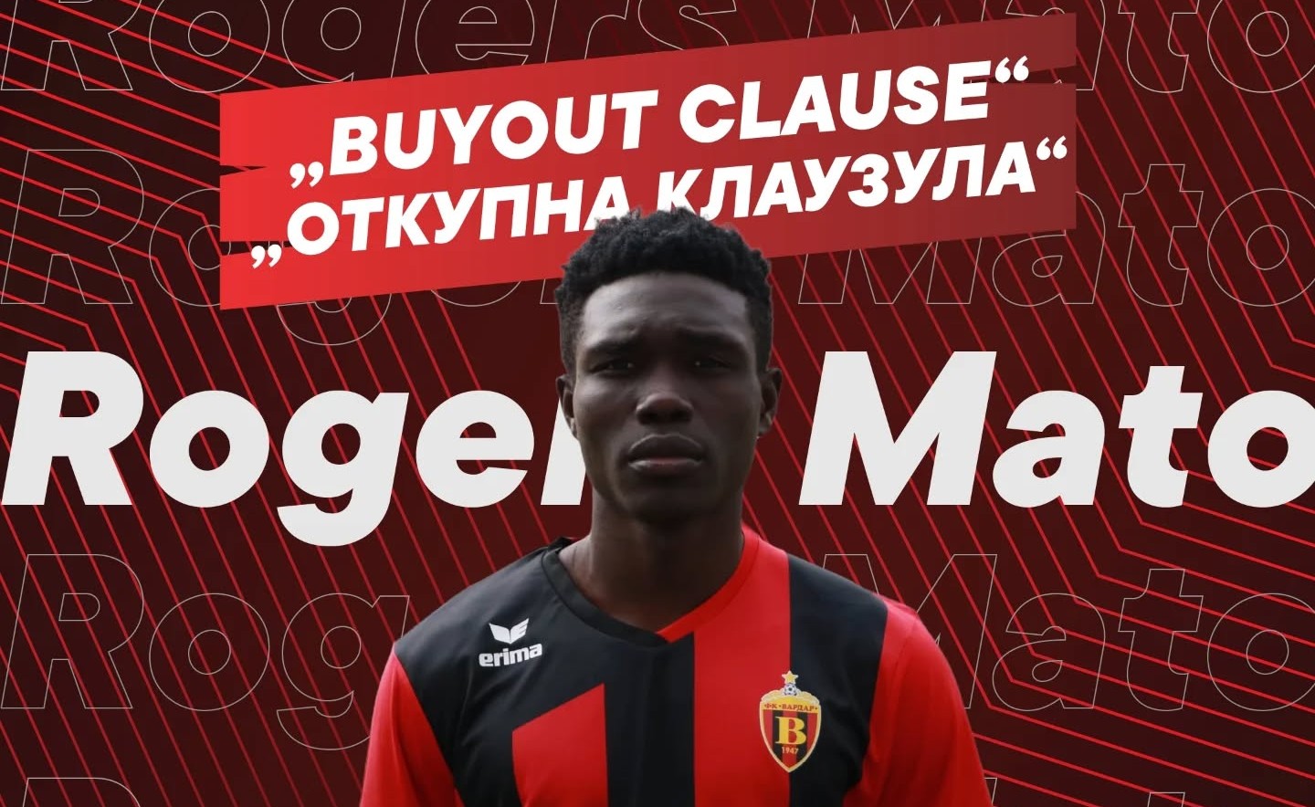ФК Вардар АД ја информира јавноста дека, поради зголемениот интерес од повеќе странски клубови за нашиот фудбалер Рогерс Кассим Мато, Управата на клубот донесе одлука да утврди откупна клаузула во износ од 1.500.000 евра“, напишаа од клубот.