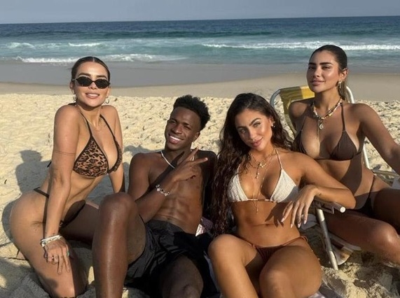 Винисиус објави фотографии како ужива помеѓу бразилски манекенки и инфлуенсерки на плажа.