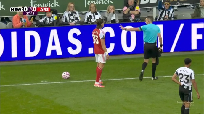 Бидејќи Њукасл и Арсенал не постигнале таков договор пред натпреварот, судијата имал право да го спречи Италијанецот да користи пешкир пред да го изведа аутот.