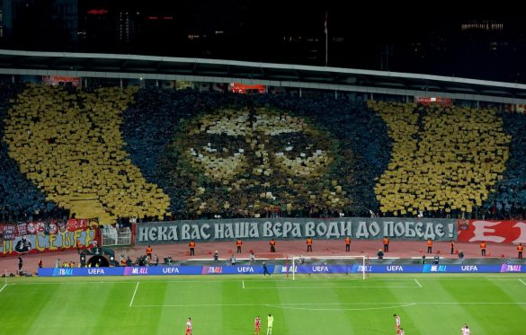 Спорната кореографија на навивачите го прикажуваше ликот на Свети Симеон, проследена со пораката дека верата треба да води до победа.